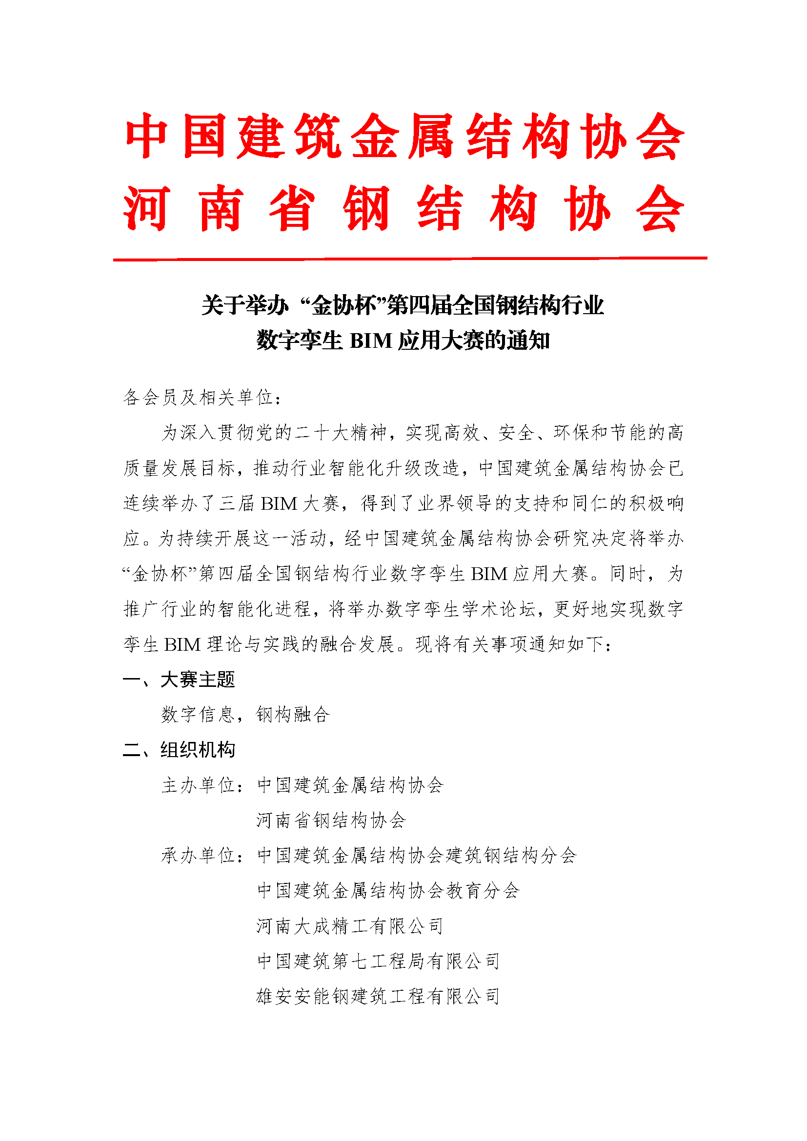 关于举办“金协杯”第四届全国钢结构行业数字孪生BIM应用大赛的通知