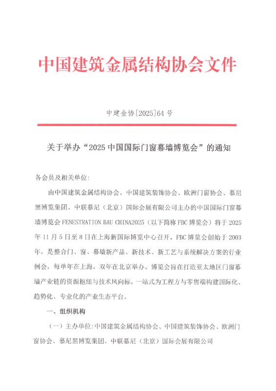 关于举办“2025中国国际门窗幕墙博览会”的通知