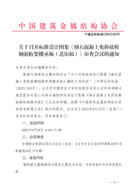 关于召开标准设计图集《细石混凝土免拆底模钢筋桁架楼承板(送审稿)》审查会议的通知