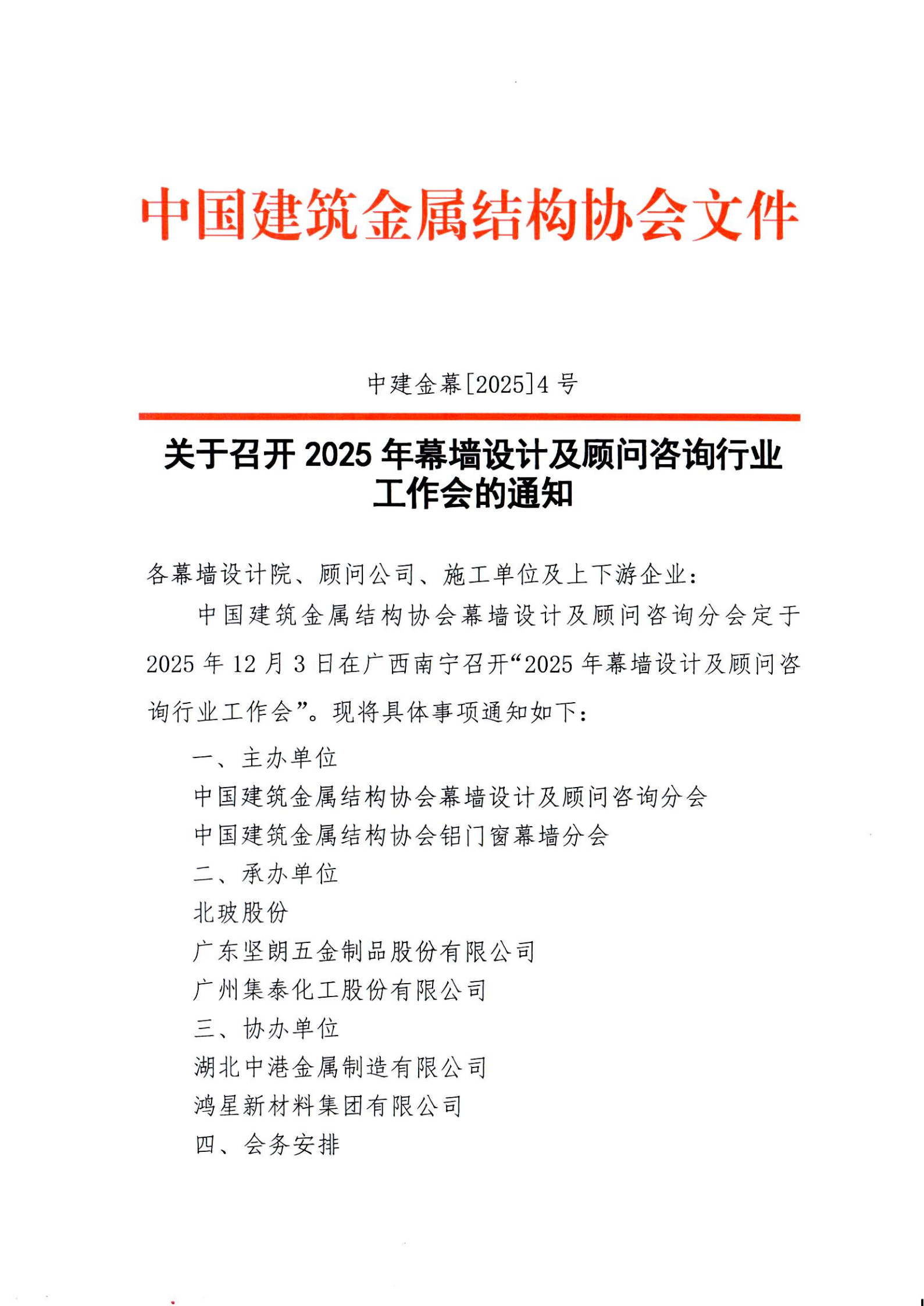 关于召开2025年幕墙设计及顾问咨询行业工作会的通知