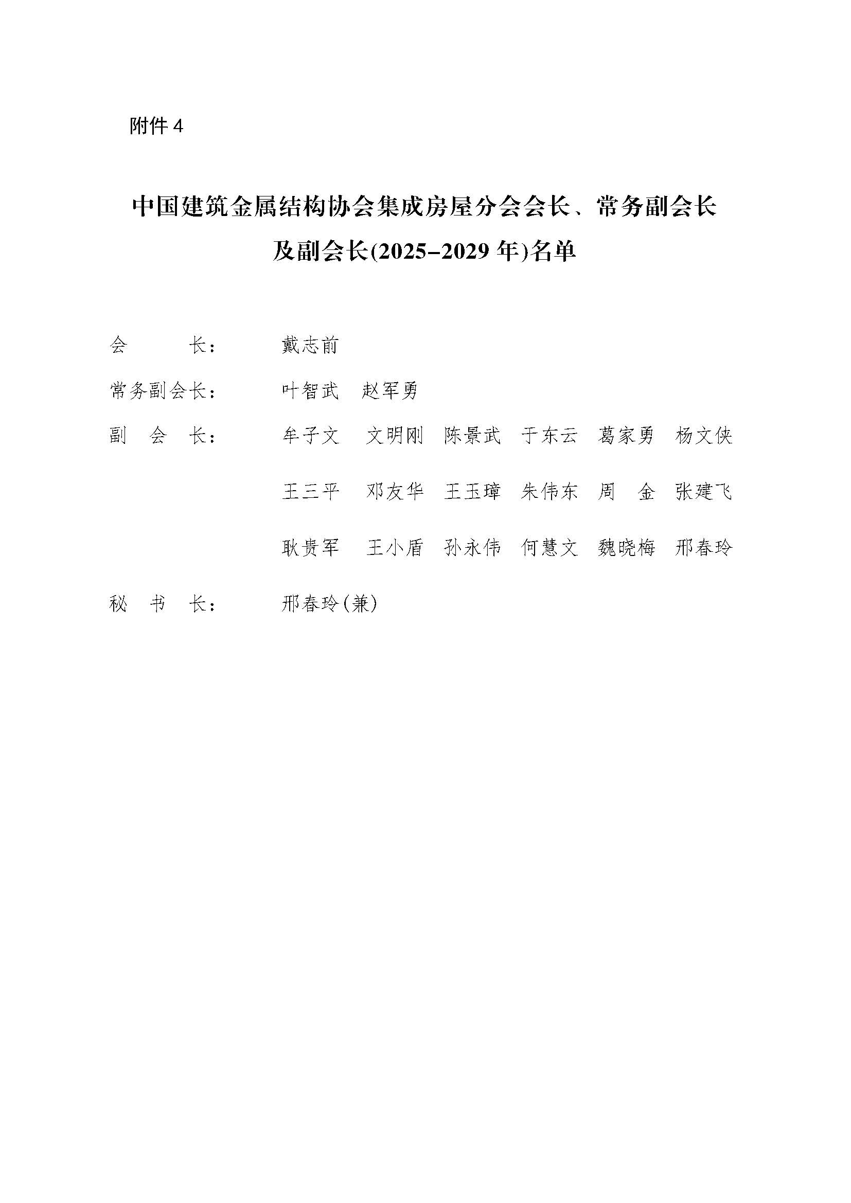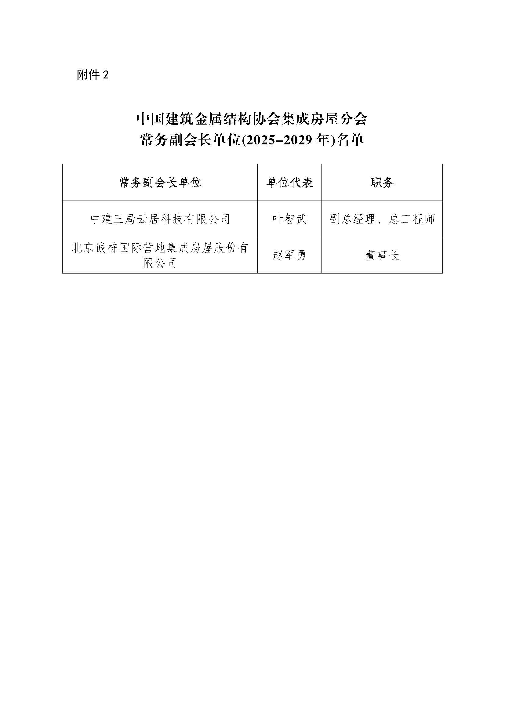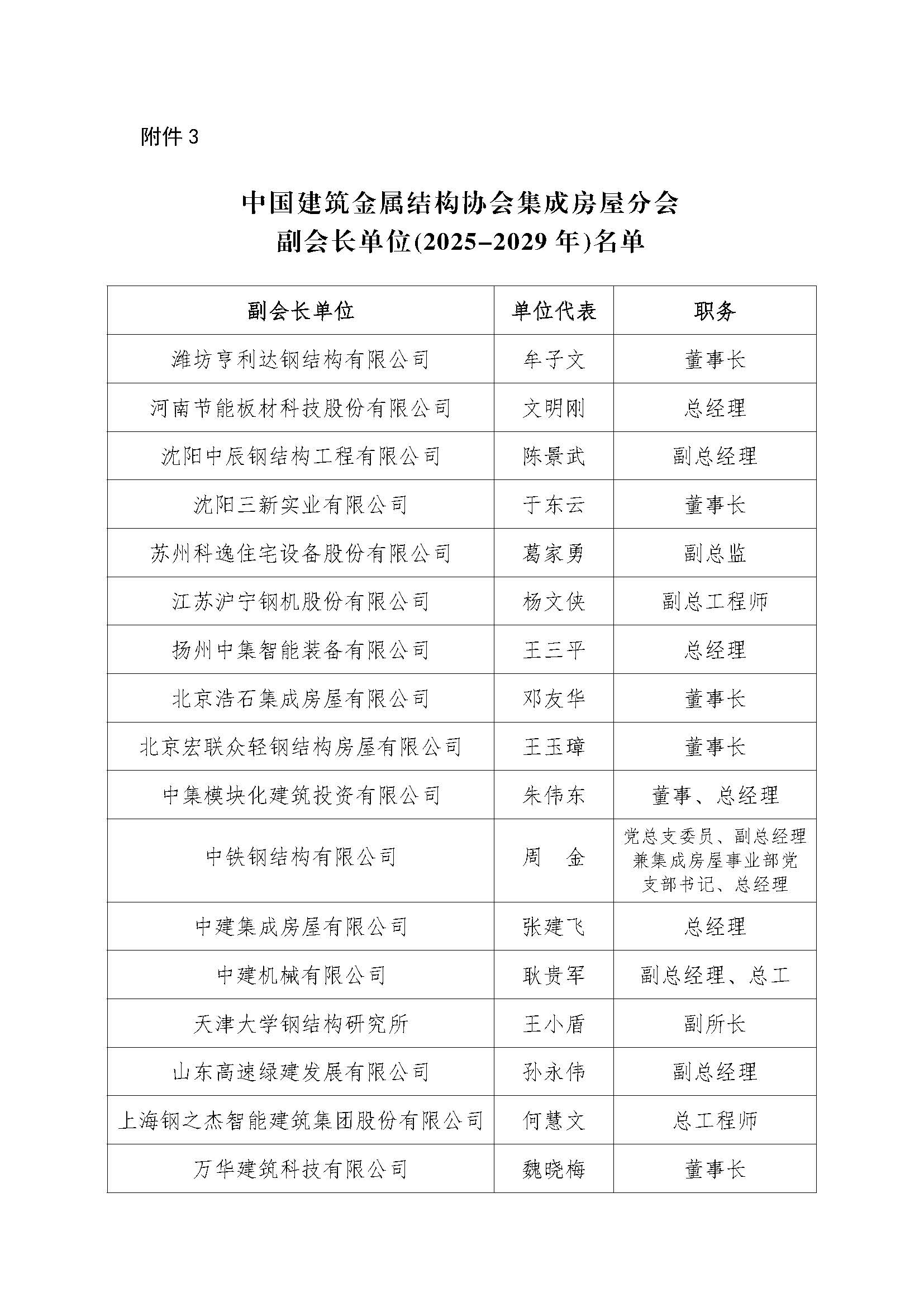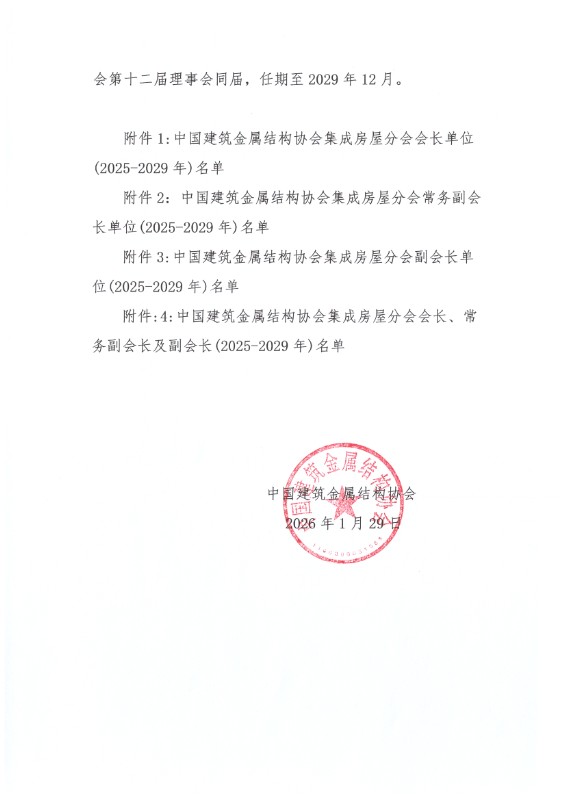 关于公布中国建筑金属结构协会集成房屋分会副会长单位(2025-2029年)名单的决定