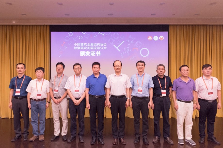 中国建筑金属结构协会党保卫副秘书长宣布:经协会批准,任命清华大学施刚为检测鉴定加固改造分会会长,北京市建筑工程研究院有限责任公司左勇志为分会副会长兼秘书长,中国建筑科学研究院有限公司程绍革、上海建科工程咨询有限公司顾军、中国建筑股份有限公司技术中心林冰、北京市建筑设计研究院有限公司甄伟、合肥工业大学王静峰为分会副会长。郝际平会长、宋为民秘书长、党保卫副秘书长为分会会长、副会长颁发证书。