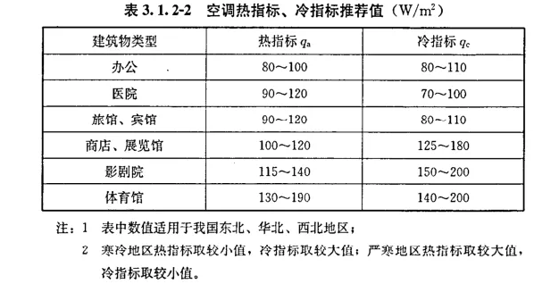 (1)依据空调设计手册,供暖冷热指标参考如下表:
