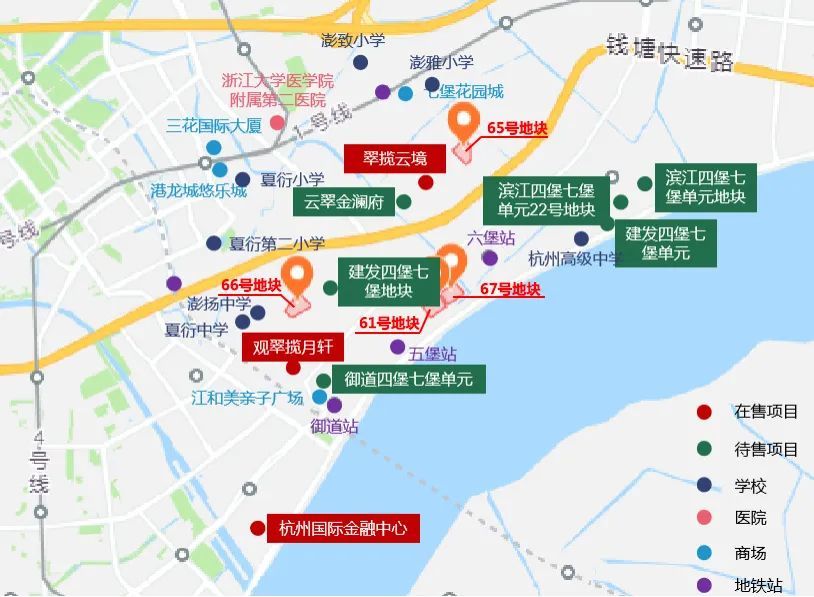 66号地块就在栖江揽月轩隔壁,限价66000元/㎡持平建发22号地块,地块优势在于更靠近钱江新城一期,能享受到更现成的头部板块配套资源。